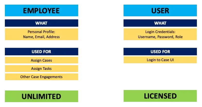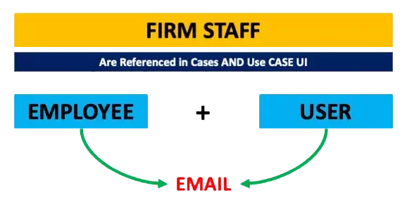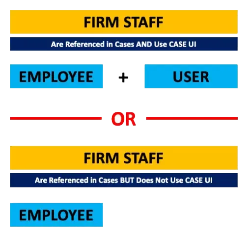 A firm can have employees who may not have access to Case UI but execute tasks related to cases or clients. Similarly, a firm can have employees who may also have access to Case UI.
